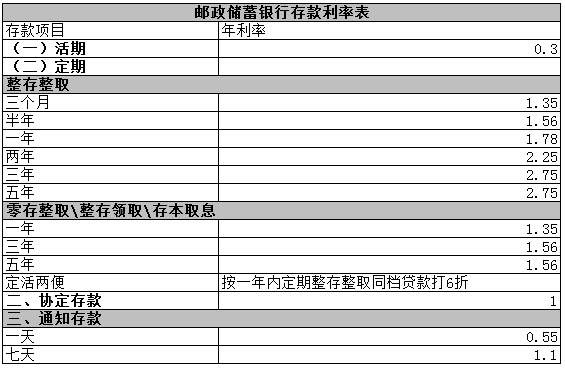 注:实际执行利率请咨询邮政储蓄银行各营业网点。