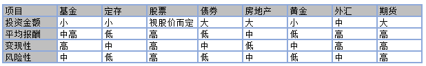 目前国内常见的投资工具包括:定存、股票、基金、债券、期货、房地产等等。这些投资工具各有其报酬与风险状况。以下就是各种投资工具的特色: