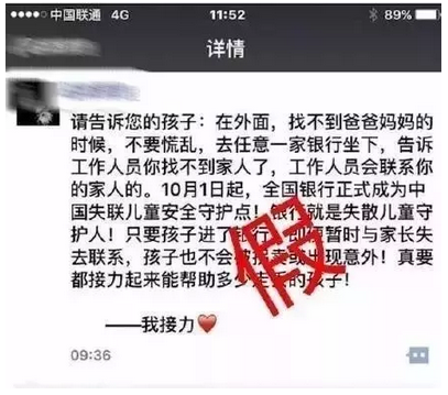 谣言四、孩子丢了找银行?