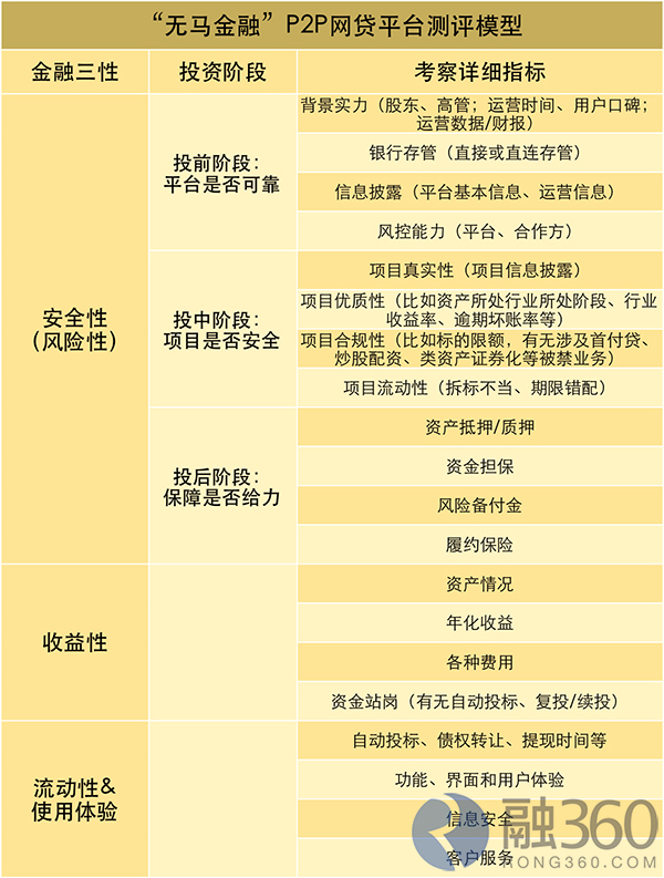 无马金融P2P平台测评模型