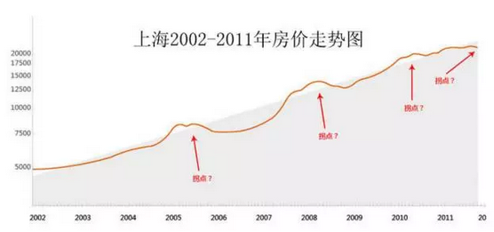 10年间上海的房价虽然有调整,但是这些拐点几乎可以忽略,你最多可以看成是登山过程中的一次休息,长期依然是上涨!