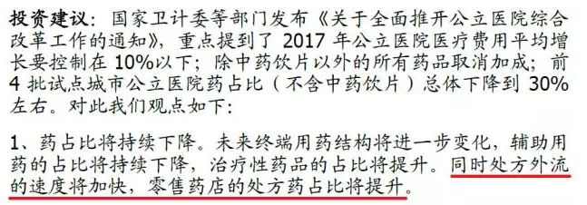 最敏感的股票市场上,多家券商的研究报告早已预测:处方外流速度加快、零售药店的处方药占比提升。