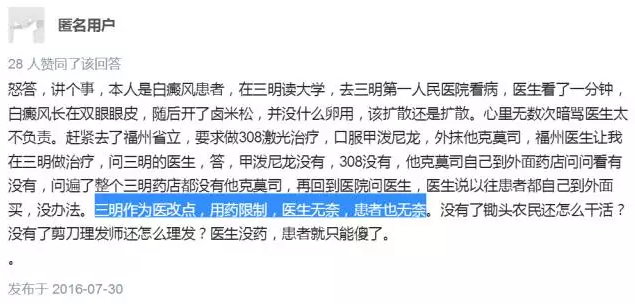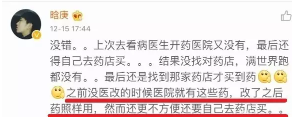 前期医改试点城市,如福建三明,已出现控制“药占比”,最后选择便(lie)宜(zhi)药品,或干脆没药,导致当地住院病人涌入周边城市或浙江治疗。