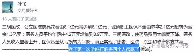 某网友对医改试点的评价:第一次听说打麻将四个人都赢了。