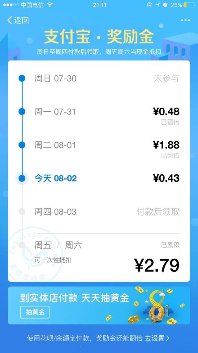 方法交给你们了,这几天能用现金的地方都用支付宝吧,便利店没事多逛逛,说不定,这会是一个丰收的八月。