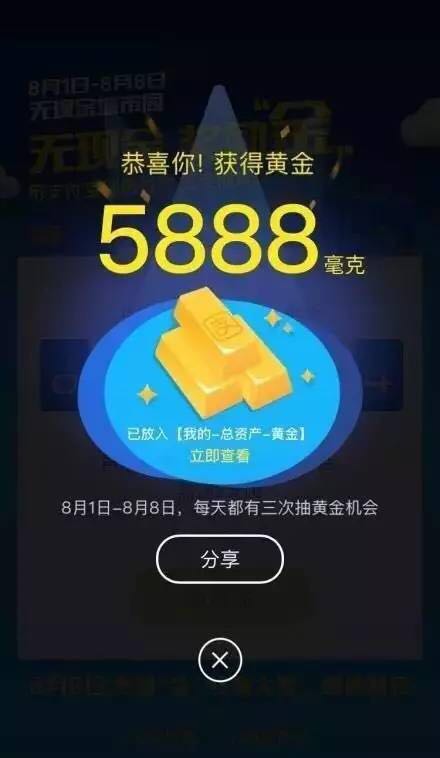 8.1-8.8,扫码支付满2元超过2笔,可以抽一次黄金,第3笔再抽一次,第4笔再抽一回。