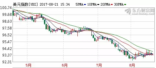 而美元指数在今年4月底跌破100点后(一般认为100点以上,美元为强势),开始持续走弱,最低一度触及到93点这个重要关口。