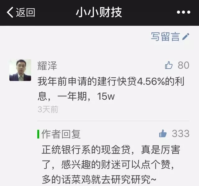 这一下子就颠覆了大家对银行的认知。要知道,无论是理财、基金、保险还是其他什么产品,菜鸡已经很久没有搭理过银行了。因为银行的相关产品,基本完败于互联网公司,往往收益不高,还雁过拔毛收掉一层高额手续费。唯独这一次,银行的现金贷业务,貌似比借呗、微粒贷都要给力……