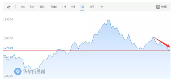 半个月来,黄金接连跌破1280和1270两大关口,周四(26号)更创下三个月来的新低: