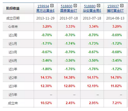 而目前国内市场只有4只黄金ETF基金,如下: