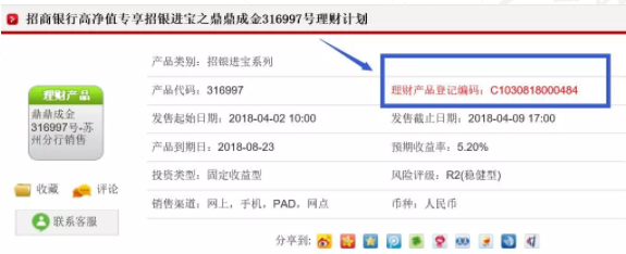 你在银行买理财产品的时候,都会有一份“产品说明书“。上面会有一个表明产品身份的”编码“,例如招行的这款产品。
