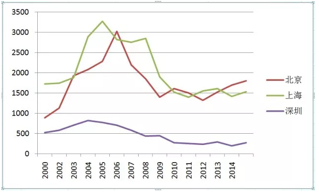 2014年之后,深圳的商品住宅竣工面积没有任何反弹迹象。土地供应极其稀缺,重度饥渴,直接导致供需失衡。