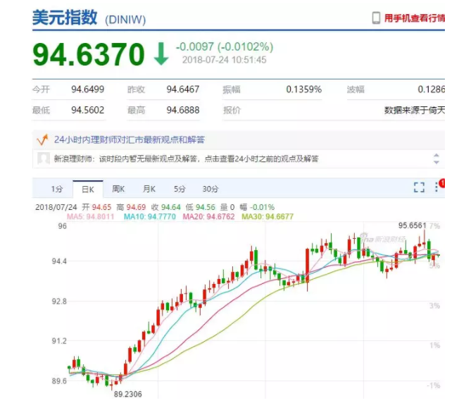 最近人民币一路贬值,美元比较强势,黄金“歇菜”。