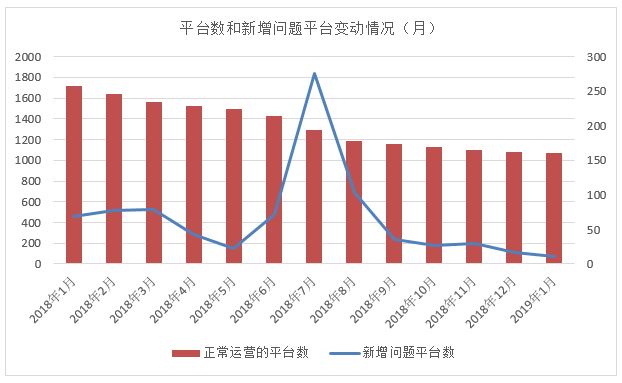 根据融360大数据研究院重点监测数据显示,截至2019年1月底,全国正常运营的网贷平台共计1071家,新增问题平台数为11家,较上一个月大幅减少35%。
