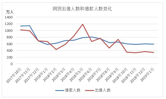 根据融360大数据研究院重点监测数据显示,截至2019年1月,当期活跃出借人、借款人数量分别为339.33万人、590.36万人,环比分别下降8.71%、1.94%。本月活跃出借人数和借款人数均出现下滑。