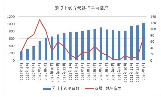截至2019年1月底,全国共有1020家正常运营的网贷平台上线银行资金存管系统,占融360监测范围内正常运营平台的94.26%。1月新上线银行存管的平台数量为74家,较上一个月激增。1月份共有3家上线银行存管的平台出现问题。