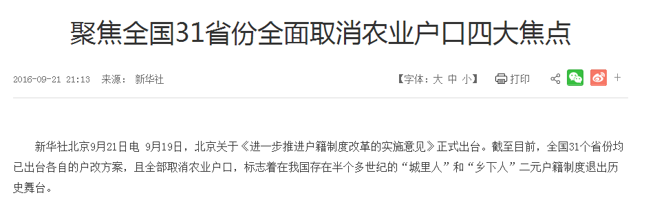 户籍制度改革使户籍对人口的约束性正在减弱,农村人口向城市转移的流动性在加强。早在2016年,改革措施就已经相继被各地执行。