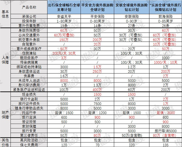 总之,明确自我需要,挑选最适合自己的保险产品。接下来,《维度》挑选了几款市面上保障相对全面的旅游险,进行评测分析和横向对比,可供参考: